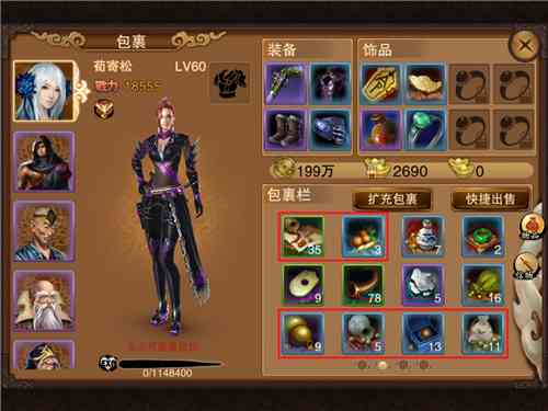 在城镇点击丹药按钮, 就会打开丹药界面: