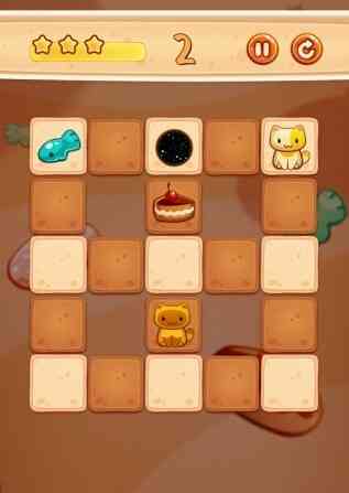 1. 游戏画面清新, 在这里你需要利用你的智慧,帮助小猫咪吃到食物。每一关者阝有其独特的挑战,需要你巧妙地布局。