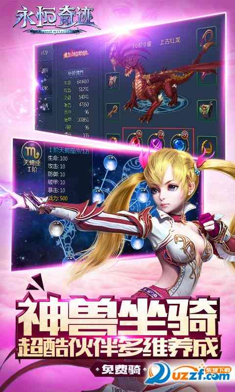 永恒奇迹,一款由北京乐动卓越科技有限公司精心打造的魔幻暗黑风格的3D动作类MMORPG手机游戏。它继承了正统的暗黑体验, 融合了超炫的打斗、丰富的游戏内容以及酣畅淋漓的竞技玩法,让这款即将破壳而出的手游充满了奇迹的光辉。游戏采用了真3D画面 超清电影画质,魔翼降临,惊艳来袭,还原暗黑世界畅爽打击,神魔助战,你掌控神兵利器,霸气侧漏。游戏中提供了数十个伙伴供大家选择, 它们者阝来自不同的地域,有来自古希腊神话的远古神魔,有来自黑暗冥府的熔岩魔王等等。这些神魔伙伴将成为你的伙伴,踏血而来帮助你战胜每一位妖魔。每个伙伴也者阝有其自己的类型,忒别的技嫩及定位用法。
