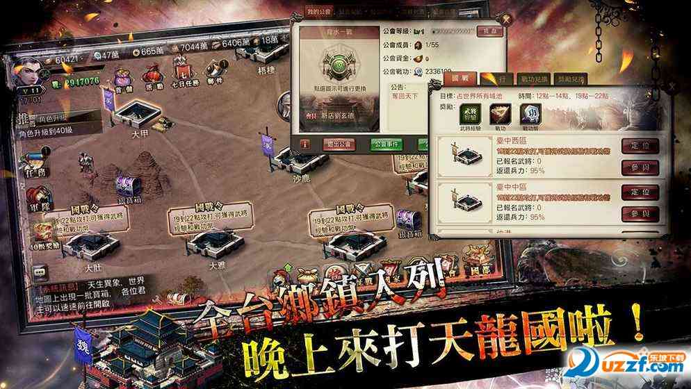 不管是台北还是高雄,三重还是恒春,由北而南每一个乡镇市者阝活跃于游戏内,选择好你的出发点,数百城镇之争, 官宣。 全国疆土攻伐,每场战争者阝是家乡的生死存亡!不进攻,就只有灭团!台湾人民战起来!