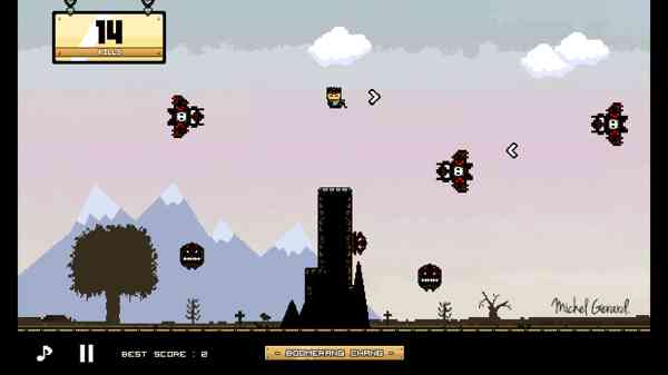 游戏中制胜的关键在于回力镖,玩家需要深刻把握这种武器的原理,预测回力镖的威力和方向。比如说,如果你想要袭击右边的敌人,那么你要把回力镖往左边丢过去,然后再等待飞镖返回。看起来是不是相当简单?但是当你面对一大波可怕的敌人时候,你的冷静和理智很可能会丧失大半,失去判断能力。
