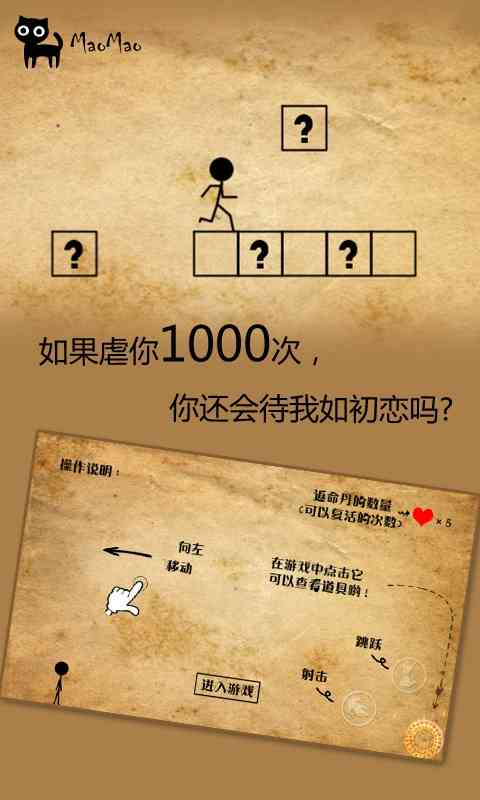这是一款有点变态, 有点坑爹的大冒险游戏,游戏中有多条路可选,有存档点可依保存游戏进度,入手简单,极具挑战性,快来挑战吧!我们保证不会走一步死一步的!如guo你有强迫症、 你是自虐狂,你喜欢变态坑爹类型的游戏,那么恭喜你,你找对组织了赶紧加入到组织中来吧。玩游戏,找组织,越虐越开心。