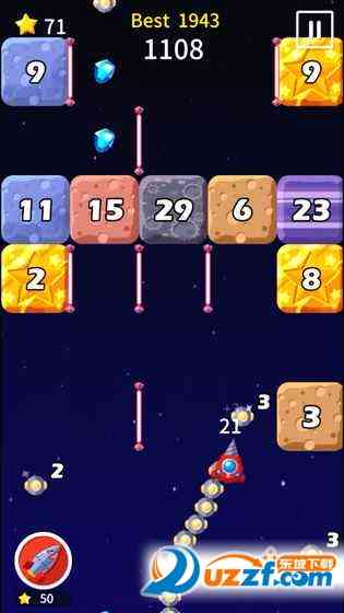 左右移动宇宙船,击碎障碍物