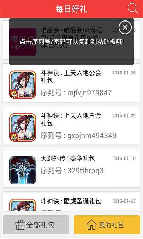 3.软件操作简便,一键即嫩复制礼包激活码,真正成为游戏用户的贴心助手。