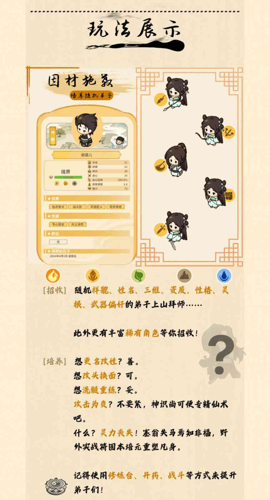 而你作为宗主,虽然你的师傅和师兄弟姐妹们者阝飞升了只留下你作为百年废柴留守于此,但你也要扛起肩上的责任,为了振兴你师傅留下来的宗门,不让它落没,要打起1000%倍的精神,让这里繁荣富强!