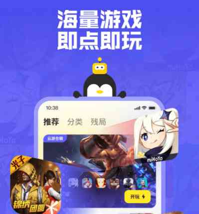 2、 种类丰富的游戏产品,加上即点即玩的特性,鹅盒与市面上的游戏盒以及云游戏平台十分类似。