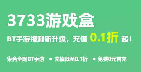 3733游戏盒集合全网公益服手游, 包括BT版、满VIP版、GM版、无敌汉化版等,内置的游戏加速器,可20倍加速,让任务/跑环更轻松。3733游戏盒还重磅打造帐号交易与小号回收功能,小号不玩, 百感交集。 官方高价回收。等比例“转游”功能更是降低游戏成本,游新游同享等比例充值比例。还有啊, 盒子还拥有官方正版授权的折扣手游,最低折扣1.0折起,每天还有首充礼包、充值优惠券等着你来拿哦~