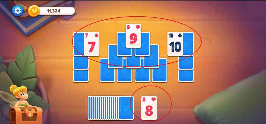 挽救一下。 给你一副牌, 最下方有一张是可以看见的,上方有三张,你可以将其覆盖到下面和蜘蛛纸牌一样,你点击的上方的牌面必须小于下方的牌才可以成功消除,直到消除所有的牌。