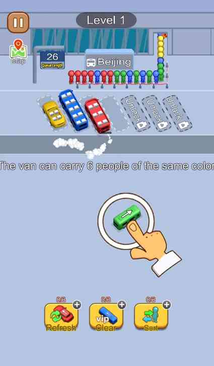 加入熙熙攘攘的CarJam世界, 混乱与秩序相遇,策略带来成功。你的目标?驾驶一系列紧密拥挤的车辆驶向登车区,确保各种热切的乘客在颜色合适的车厢中找到自己的座位。每个交通堵塞级别都展示一场公交狂热,你需要确保所有乘客顺利登车。
