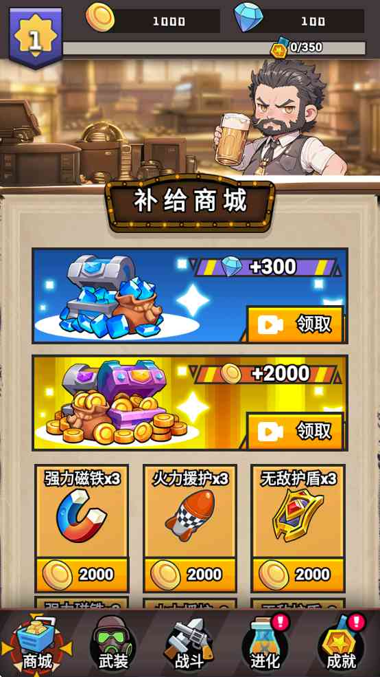 1.商店点击看广告获得大量货币