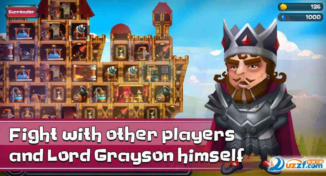 《城堡大作战》是一款Q萌人物画风的即时策略竞技游戏。游戏中,你可以在自己的领地建造各种各样的建筑,根据设计图改过或者强化它们,压制敌国的进攻!玩家只需要在敌人攻击城镇时通过简单的操作把英雄与士兵放出,他们就会自动攻击敌人。