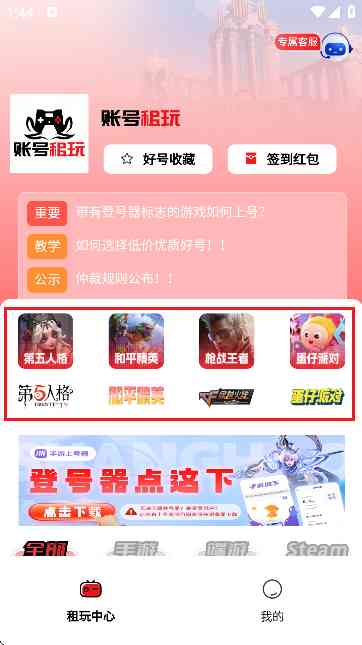 切记... 账号租玩APP是个高质量, 且靠谱的游戏服务平台,涵盖了市面上几乎所有热门游戏。从拥有众多稀有皮肤、高段位的 V10 账号,到各种限定皮肤的特色账号,应有尽有。全品类的游戏覆盖,让无论你是何种游戏类型的爱好者,都能在平台上找到属于自己的 “游戏宝藏”。