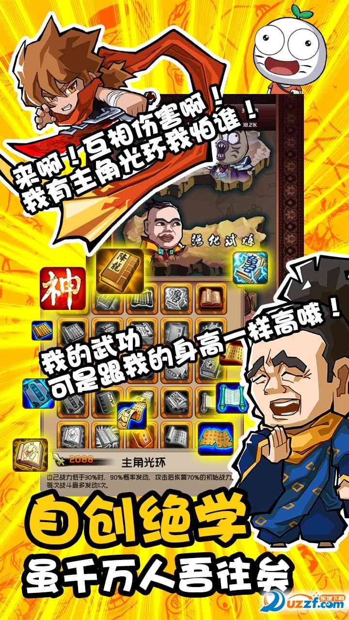 暴走漫画正版IP手游, 王尼玛、唐马儒、张全蛋全程献声陪玩,千万暴漫粉丝鼎立推荐。一个人,一把剑,叫浪迹,一堆人,打群架,叫江湖。最无厘头的画风, 最逗比的对白, 你我共勉。 打架五分钟,互喷两小时18岁以下玩家请在父母的陪同下上车,这是一个有内涵的游戏,节操将成为你的绊脚石,拿起你手中的贱,加入到《暴走群侠传》的世界。
