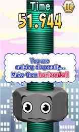 2、 虽然滑动方向很容易确定为向右,但是玩家们要想拿到高分的话一定要保持水平方向,这样就能够让螺母上升的速度更加的快,在滑动的时候我们可以看到方向箭头,当方向箭头为白色的时候就表示我们的滑行有一定的角度,当箭头为绿色的时候,则表示我们滑动方向为水平了。