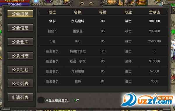 啊这... 公会中可查看所有的成员信息及在线状态, 一边进行查看装备,聊天等快捷操作,会长可对成员进行升职,降职或开除操作