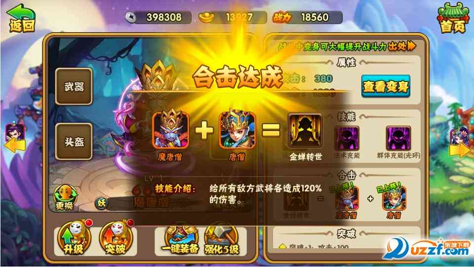 第二点就是在满足合击的情况下去追求变身武将吧!这也是一个很强力的设定。但并不是所有的武将都可以变身。可以变身的武将在战斗中,形象下方会有几个“豆”也就是怒气。当怒气攒满之后就会在自己的回合上自动释放变身。变身会使其恢复到满血的状态,并且强化自己释放的技能。一般战斗中看到一个变身是件很闹心的事情。好不容易打掉那么多血,一个变身~~回满了,说实话...。