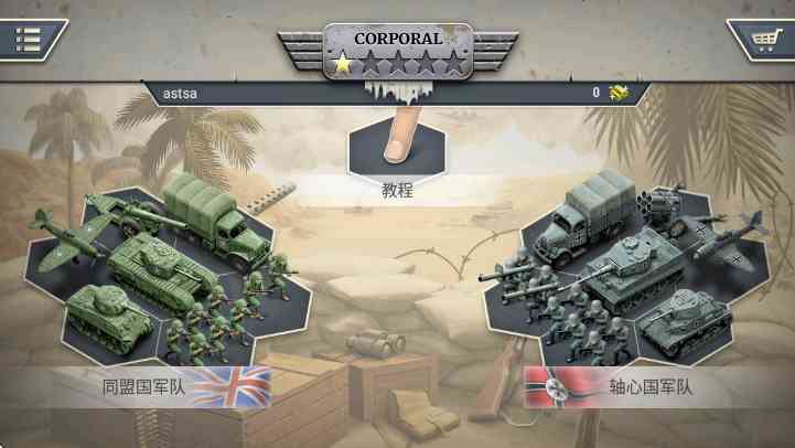 可选择同盟国或轴心国,不同阵营有各自的特色兵种和作战风格。