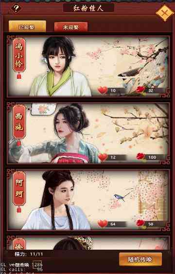 除了红颜系统,寻访系统也是游戏的一大亮点。在这里你可以与各种红颜邂逅,通过多见面后红颜就会对你以身相许。而运势越高,遇到红颜的几率就越高。建议玩家在寻访前,一定等到运势恢复到90之后再开始寻访,运势低的时候寻访有可能会一无所获或损失资源,很棒。。