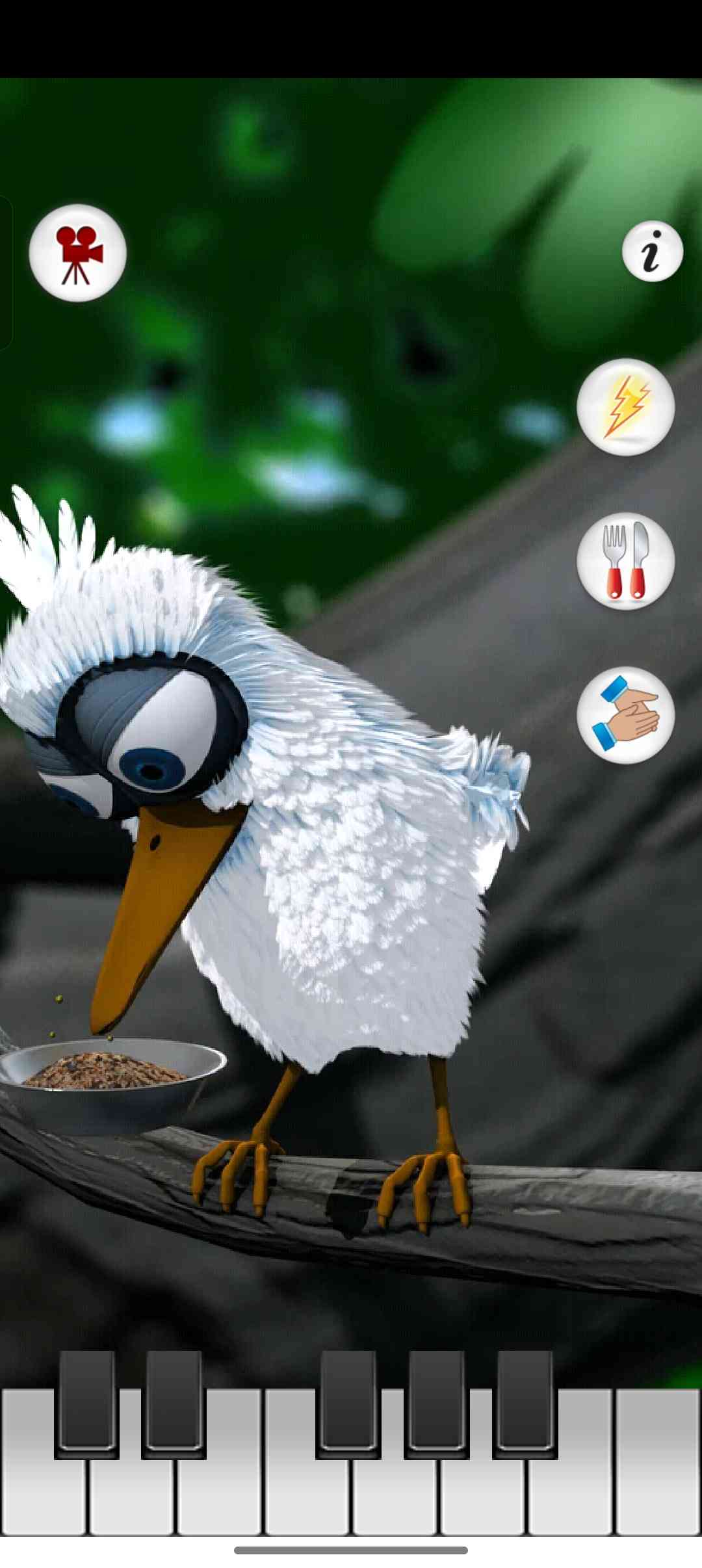 会说话的拉里鸟是你的好朋友, 它会吹口哨,也会说话。弹奏钢琴键盘来让拉里吹出完美旋律的口哨。 换言之... 对他说话拉里就会重复你的话。你可以戳他,喂他食物,用闪电劈他,或让他鞠躬接受掌声。
