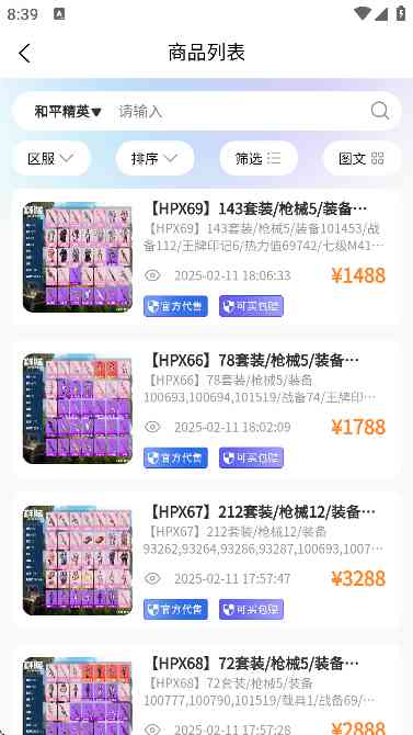 3、选择一款游戏进入到该游戏的账号商品列表。如图所示。可以根据区服等进行精准筛选。