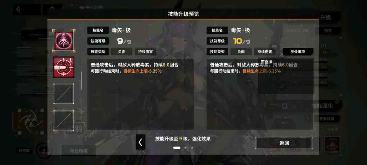别纠结... 4.技能等级:主要依靠抽卡来提升的养成内容, 分为0-10级,提升技能等级可以强化已有技能或解锁新技能,部分角色升到9级技能时可以增加攻击范围。其中0-9级每次升级需要消耗20本对应角色的技能书,10级技能需要依靠装备系统来实现。