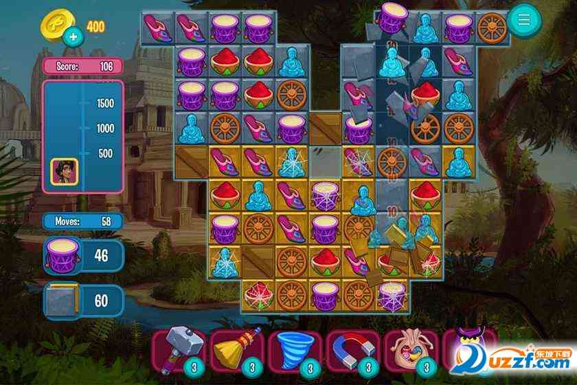 找到失落的城市的宝藏,并保存印度公主在这个真棒新的比赛3益智游戏!进入古印度的气氛,享受光明的优秀艺术,一边解决许多具有挑战性的难题。印度的传奇是流行的比赛3类型的辉煌游戏。您需要匹配成对的相同形式和颜色的项目, YYDS... 并尝试在给定的运动之前获取目标点或其他目标。如果达到目标,你可以进一步提高水平。各种模式,无数的奖金,电源ups使得这场比赛3的游戏更有趣。