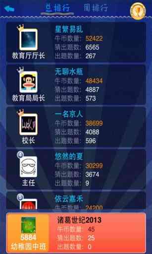 ★ 最牛B排行榜,能进TOP20的才是疯狂猜图大牛啊!你。。。也是吗?