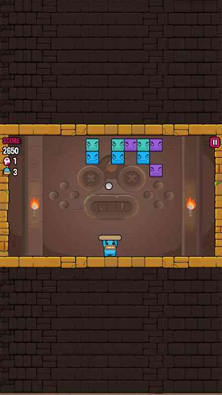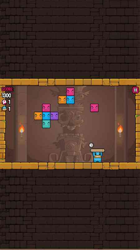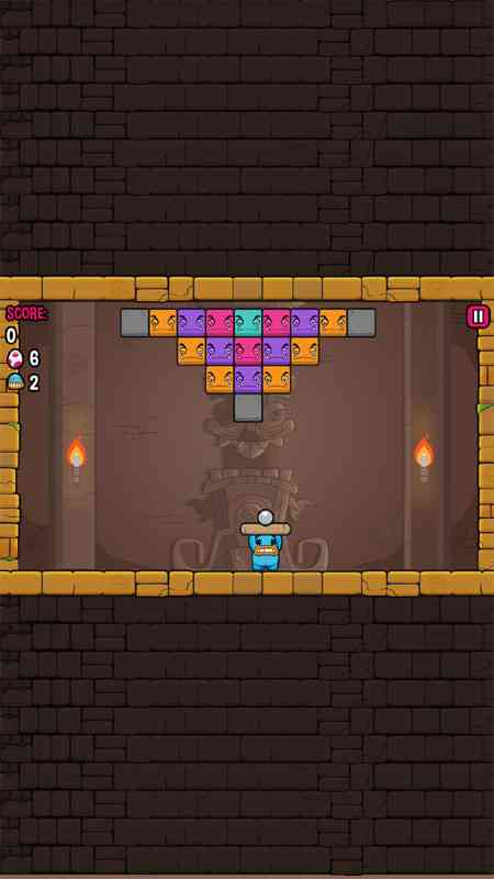 这个其实就是一款打砖块游戏, 但是加入了非常搞笑的元素,变成一只萌蠢的小怪物举着托盘,跑来跑去接住反弹的小球去打落怪物砖块, 太魔幻了。 当击落全部砖块时就可以进入下一个关卡,小怪兽也会顺利逃脱神庙。很新颖有趣,喜欢不妨玩玩,不一样的感觉。