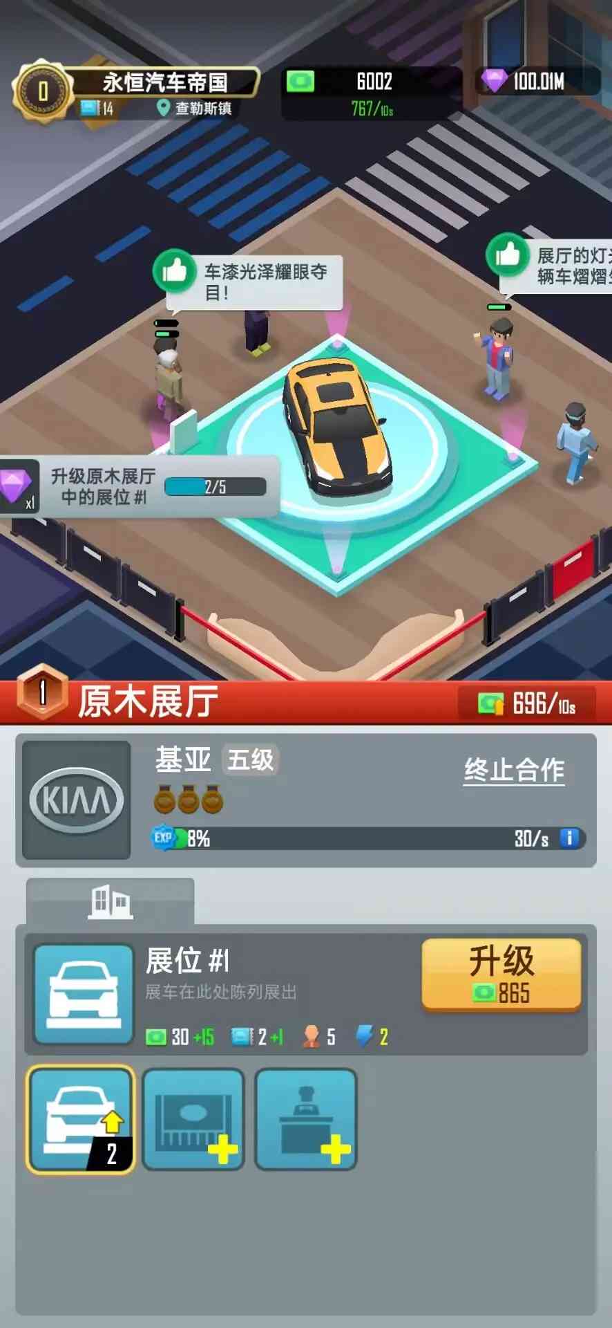 游戏中的车位是汽车停放和产生收益的地方。玩家可以花费金币对车位进行升级,