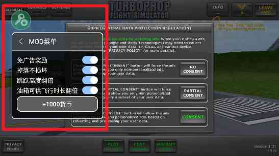 涡轮螺旋桨飞行模拟器1.32更新是该游戏最新的版本,且本页面为大家带来的是内置mod菜单的游戏版本,在游戏中玩家可以自由开启或关闭mod菜单,功能包括但不限于免广告、无限货币、掉落不损坏等,游戏玩起来非常逼真,玩家将成为一名飞机驾驶员,驾驶飞机在广袤的游戏地图中翱翔,还可以解锁更多的机型,感兴趣的小伙伴快来uzzf吧!