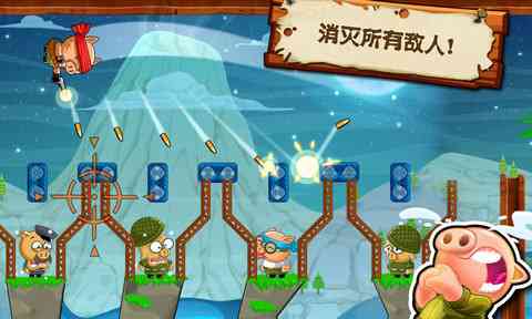 游戏的玩法有一些类似《百战天虫》系列, 玩家需要学会蓄力来瞄准,使子弹击中更多的敌人。不同的是这款游戏融合动作冒险的元素,而且还有收集道具的要求,大大满足了喜欢收集战利品的玩家。游戏中包含200多个关卡与5种任务模式,还有啊还有20种新颖的人物造型供您选择。时间不多了拿起你的武器开始这场营救任务吧!,我爱我家。