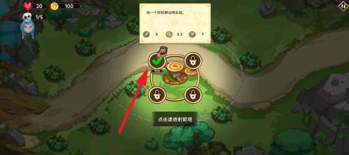 2、 根据游戏中的提示来建造射箭塔,这是诸多塔楼中的一种,可以向一个目标射出两支箭,推倒重来。。