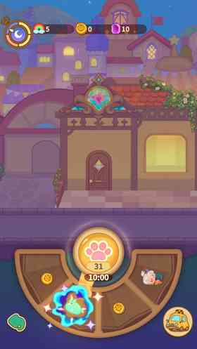 2、点击下面的猫爪,可以通过转盘获取金币或是新的客人哦。
