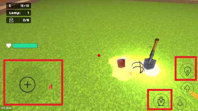 1、进入游戏之后你需要控制角色行动。左侧的控制遥感用于移动角色,右侧则可以控制视角和挖掘,还可以放灯,原来小丑是我。。