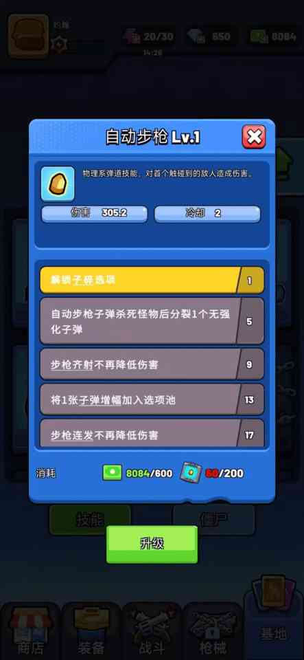 武器升级:利用积累的资源升级武器,提高武器的伤害、 好家伙... 射速等属性,增强对僵尸的打击能力。