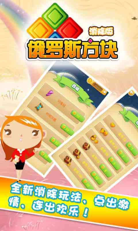 《俄罗斯方块消除版》是一款由俄罗斯方块改编过来的休闲益智游戏。游戏画面非常清新,音效也不错。游戏还有100关卡及丰富的道具特效,比较有意思,彩色丰富的画面也比较吸引玩家,太刺激了。。
