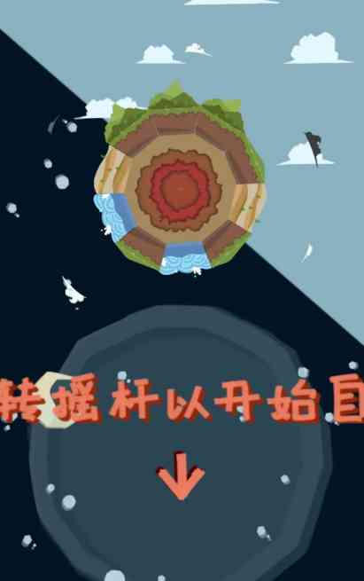 游戏的玩法比较简单, 就是一个摇杆,然后转来转去操控一个星球在那里自转而已,这个自传又会影响哪一边受热或受冷的比较多,或者是转的太快,又会引发一些灾难,转的太慢或变得太快,又会导致一些什么什么的。然后期间也会有什么陨石来攻击,还有外星人来入侵之类的,都可以靠你的操作来进行一些规避或者是保护。总而言之,你的操作会影响人类的存亡。反正也没有什么新手教程,就一行字,告诉你摇杆可以转就没了,有啥用呢?。