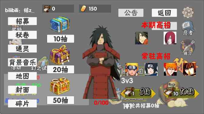 3、 从概念、秘卷以及通灵三方面来操控火影角色开启战斗,