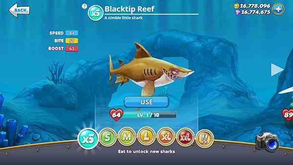 升级你的鲨鱼并装备令人惊叹的小玩意, 让它们咬得更厉害,游得更快, 梳理梳理。 变得更饿!没有耳机、雨伞和怪异的喷气背包,鲨鱼是不完整的!