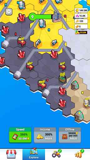 这款游戏非常容易控制,玩起来非常有趣。您的目标是连接地图上的所有工业点并创建庞大的工业链。因为您的进步,您将通过获得工业点来解锁新疆土,而工业点反过来会奖励您金钱和钥匙。只需点击土地补丁即可购买。一定要寻找生产属性-它们连接到生产链并开始为您赚钱。
