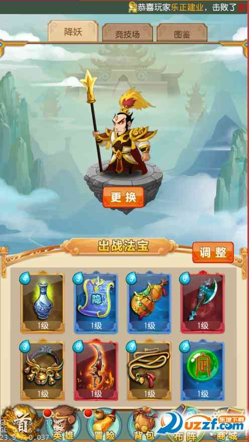 在布阵界面中,玩家可以对上阵的神将和对战斗中使用的法宝进行布置。冒险和竞技场需要布置分别的2套阵容。