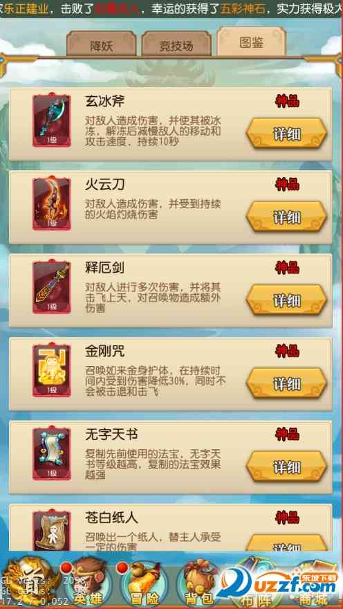 点击分页, 可以查看法宝的图鉴资料