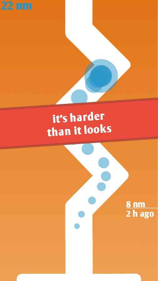 玩家只需在屏幕上按住手指, 并设法跟着白线走,途中还会出现各种障碍需要玩家躲避,这款游戏没有主角,唯一的主角就是你的手指~非常有趣简单, 我无法认同... 整个游戏开始的节奏是比较慢的,而且很好上手,一看就知道怎么运作。