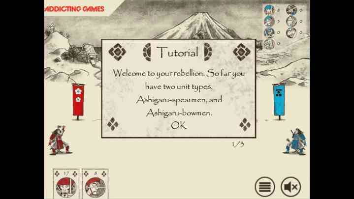 叛乱武士之战是以日本战国时期为背景的策略对战游戏!游戏中你将带领你的战士和军队来对抗叛乱的武士!游戏加入了故事和遭遇战两种模式选择, 丰富的游戏关卡挑战,以策略塔防对战为玩法,那么解锁更多的武士加入游戏战斗吧!