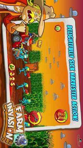 这也行? 1、古怪的农民、可爱的外星人、奔跑的动作都惟妙惟肖,幽默搞怪;- 用打谷机和破烂的农机器具与外星人进行打斗;