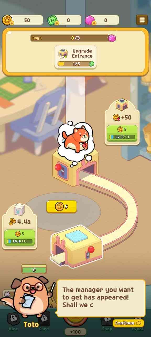你必须手动操作机器, 但是一旦你雇佣了猫和狗经理,它们就会自动运行。