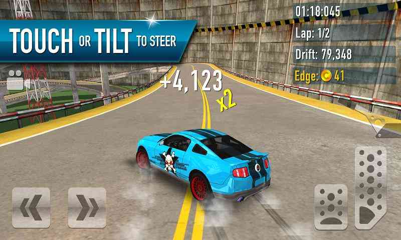 1. 熟悉游戏的基本操作, 先说说我们想要能够获得高分,那么游戏的基本操作我们就需要来了解,在游戏中右边长的按钮是加速,短的是刹车,左边能够控制我们汽车的转向,一边按下转向和加速键就能够进行漂移了。掌握这些,你的漂移之路才刚刚开始。