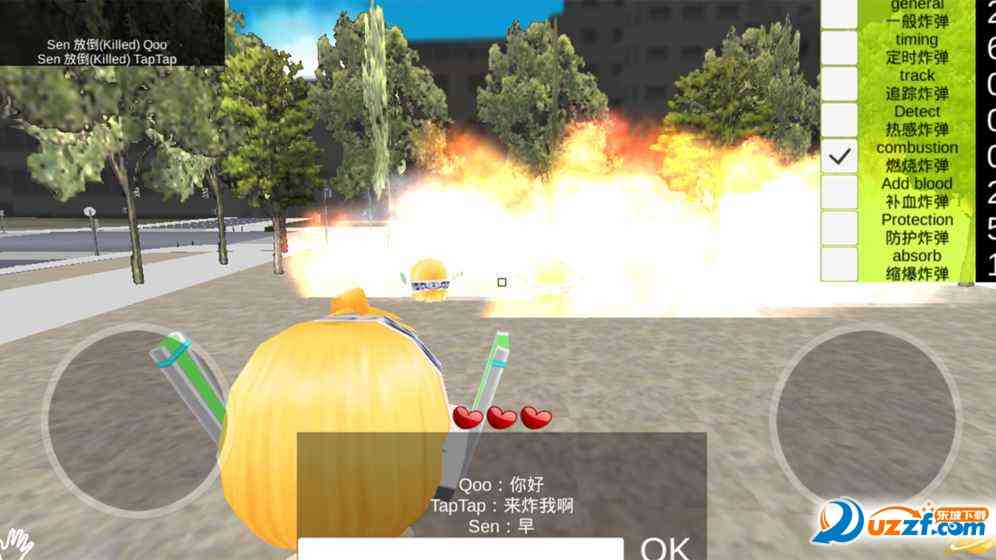 这个游戏挺新颖的,运用第三人称视角,上演了一波炸弹赛,运用各种各样的炸弹,有定时炸弹,隔一段时间爆炸,烈焰弹,在一定范围造成持续伤害等,总得要改进的地方还有很多,比如游戏的画风个人不是很喜欢,操作也有待优化, 研究研究。 ui。。。可以改改感觉好随意的样子,可以加入多种模式,比如加一些枪,武器装备,然后在地图生成僵尸,主要原因是这游戏名是逃生d市,那来点僵尸也是可以的,游戏发展空间还是挺大的,继续加油吧,五星期待