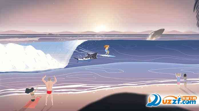去冲浪!如果你喜欢《直线滑板》这种唯美放松的休闲游戏, 那么这款同样不错,玩法和操作简单上手,不断的横版冲浪即可,点触屏幕控制人物,按住下压,松开向上滑!也有日夜场景上的视觉效果变换, 喜欢你就多摆弄几个高难度冲浪动作,本作胜在画面赏心悦目,其实是比较适合夏天玩哈,可以和滑板凑一对了,瞎扯。。