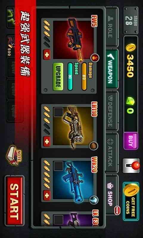 4、点击界面下方的按钮切换武器。而武器可以在进入关卡之前商店界面购买;